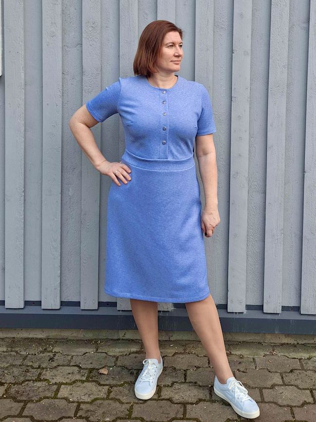 What I especially love about the Markina Dress is how it balances structure and comfort. The button placket and waistband create definition, while the gently flared skirt adds movement without bulk. It’s a streamlined, modern look that works beautifully for everyday wear, whether you’re dressing it up or keeping things simple.