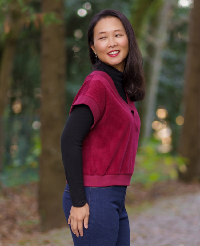 The Andorra Top & Vest is a relaxed, versatile piece that’s designed to layer beautifully. With two options—a sleeved top or a sleeveless vest—Andorra features a deep V-neckline that flatters and frames your outfit underneath. Whether you make the cozy top with dropped shoulders and sleeves or the streamlined vest finished with armhole bands, you’ll love how quickly it comes together. Crafted from medium-weight knit fabric, Andorra is the perfect project to sew for yourself or as a thoughtful handmade gift. You can create a stylish, sweater-like piece in a fraction of the time it would take to knit one!