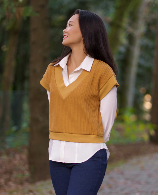 The Andorra Top & Vest is a relaxed, versatile piece that’s designed to layer beautifully. With two options—a sleeved top or a sleeveless vest—Andorra features a deep V-neckline that flatters and frames your outfit underneath. Whether you make the cozy top with dropped shoulders and sleeves or the streamlined vest finished with armhole bands, you’ll love how quickly it comes together. Crafted from medium-weight knit fabric, Andorra is the perfect project to sew for yourself or as a thoughtful handmade gift. You can create a stylish, sweater-like piece in a fraction of the time it would take to knit one!